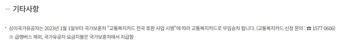 이 이미지는 상이 국가유공자를 위한 교통복지카드를 활용하여 급행버스를 제외한 모든 일반버스에서 무임승차 혜택을 받을 수 있는 기준과 절차를 예시와 함께 시각적으로 보여줍니다.