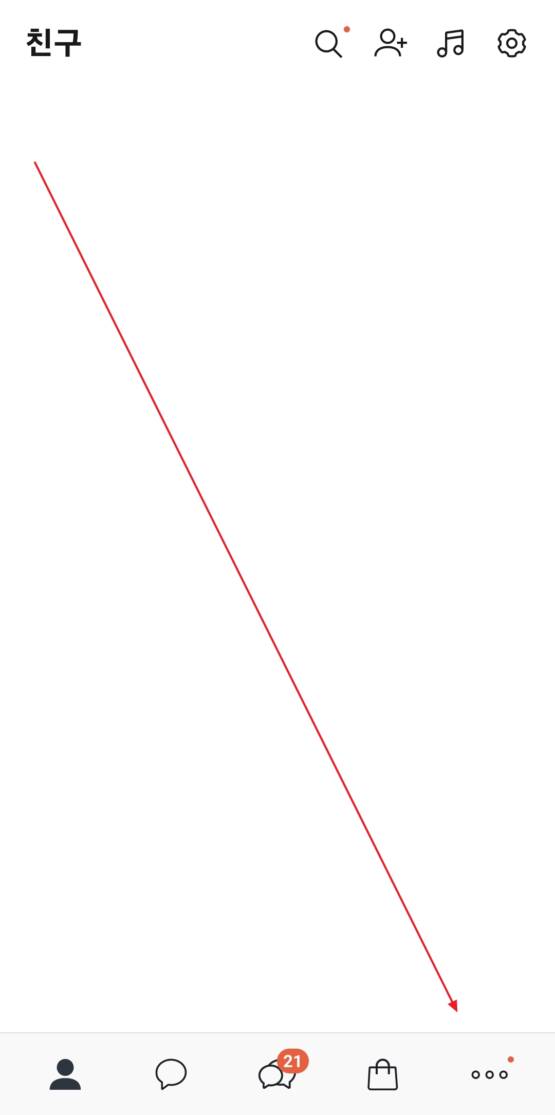 카톡 앱을 켜시면 오른쪽 맨 밑에 점이 세 개 찍힌 모양이 보일 겁니다. 거기로 들어가시면 더보기 화면이 나오는데요. 여기서 중간쯤 보시면 우리가 찾는 카카오톡 선물하기 메뉴가 딱 자리 잡고 있습니다.