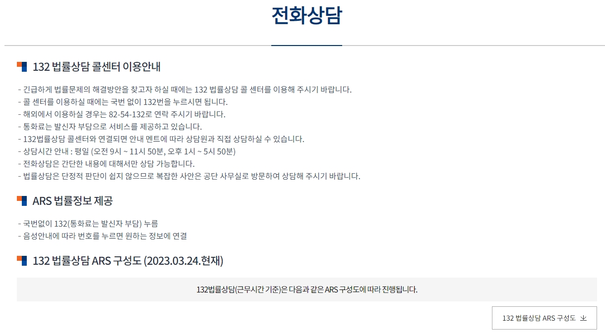 대한법률구조공단 전화상담 메뉴는 132 번호로 연결된 후 안내 음성에 따라 상담 분야를 선택할 수 있도록 구성되어 있으며, 통화료는 발신자가 부담하지만 내용 자체는 무료상담으로 제공됩니다.