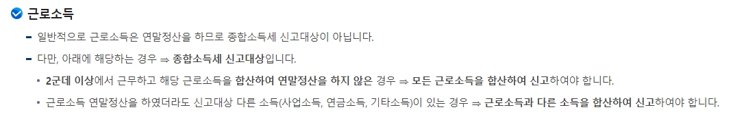 직장 다니시는 분들은 보통 회사에서 연말에 알아서 세금 정산(연말정산)을 다 해주잖아요? 그래서 월급만 받는 분들은 따로 종합소득세 신고를 할 필요가 없는 경우가 대부분이에요. 회사에서 이미 다 처리했기 때문이죠.