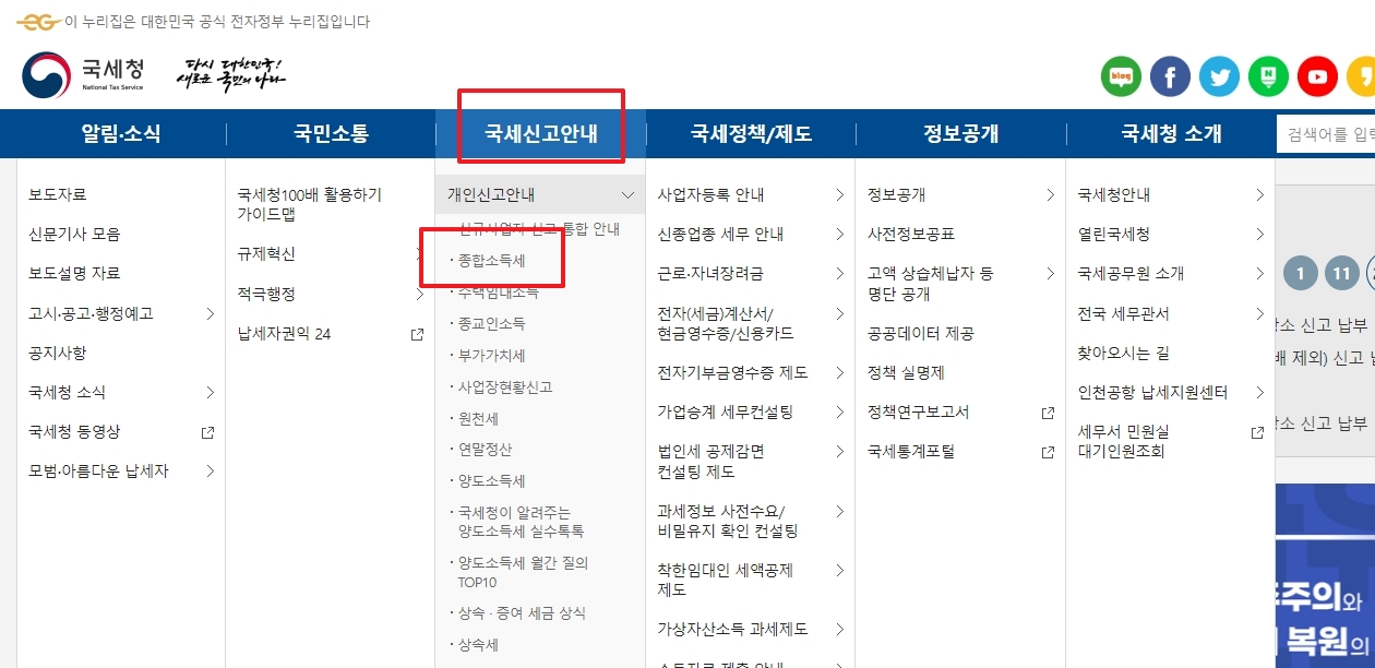 국세청 홈페이지 첫 화면에서 위쪽을 잘 찾아보시면 '국세신고안내'라는 글씨가 보일 거예요. 거기로 마우스를 가져가면 아래로 메뉴가 주르륵 나오는데, 거기서 '개인신고안내'를 누르고 또 나오는 메뉴에서 '종합소득세'를 콕 눌러주면 된답니다. 이렇게 순서대로 따라 들어가면 우리가 궁금해하는 종합소득세 신고랑 납부 기한에 대한 자세한 안내 페이지가 나와요.