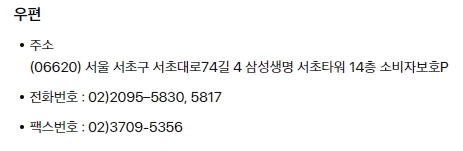 서울 서초구 서초대로74길 4, 삼성생명 서초타워 14층 소비자보호팀 앞으로 우편을 보내면 됩니다. 추가적으로 전화 02-2095-5830, 팩스 02-3709-5356도 이용할 수 있어요.
