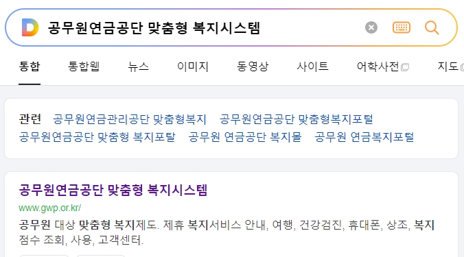 가장 먼저, 공무원 맞춤형 복지 포털 사이트에 들어가야겠죠? 우리가 자주 쓰는 검색 사이트에서 '공무원 맞춤형 복지 포털'이라고 찾아보시면 바로 공식 홈페이지를 찾을 수 있습니다.
