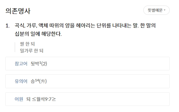 '되'라는 건 아주 옛날부터 어른들이 곡식이나 간장 같은 액체의 양을 잴 때 쓰던 그릇 같은 거의 이름이에요. 요즘 우리가 쓰는 리터(L)로 바꿔보면 1되는 약 1.8리터 정도의 양이랍니다. 신기하게도 이걸 무게로 바꾸면 재료마다 다 달라져요.