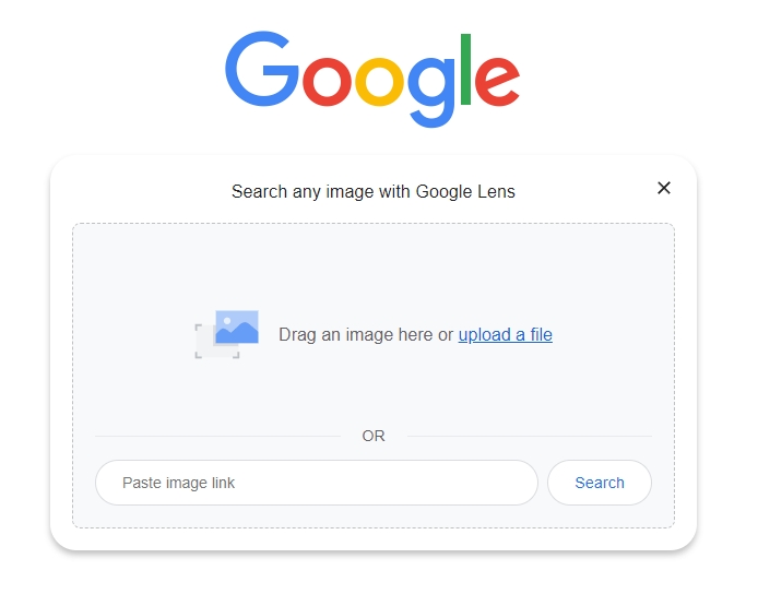 구글 홈페이지에서 검색창 우측의 카메라 아이콘을 클릭하면 이미지 검색 창이 열립니다. 별도의 설치 없이 웹에서 직접 사진 업로드가 가능해서, 특히 컴퓨터로 확인할 때 빠르고 간편합니다.