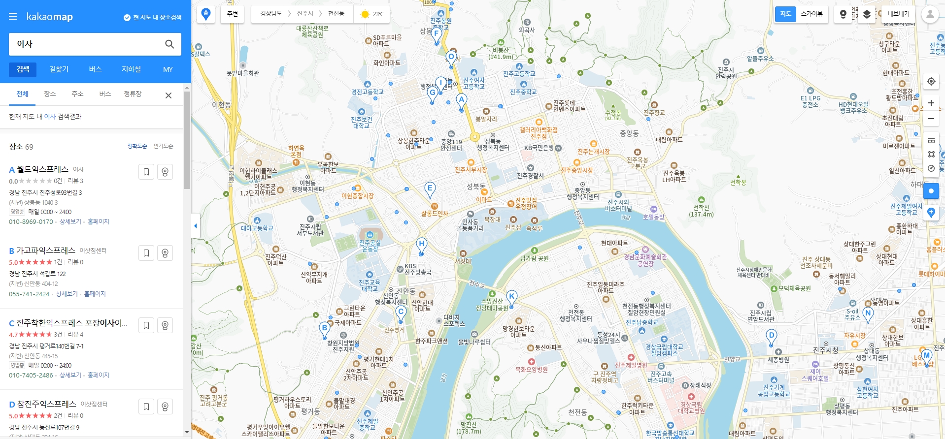 이렇게 검색하면 업체들의 위치뿐만 아니라, 다른 사람들이 남긴 별점이나 간단한 후기도 바로 확인할 수 있어서 어떤 업체가 괜찮은지 대략적으로 파악하는 데 큰 도움이 됩니다.
