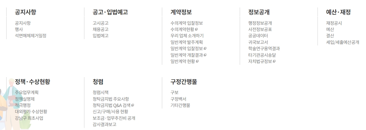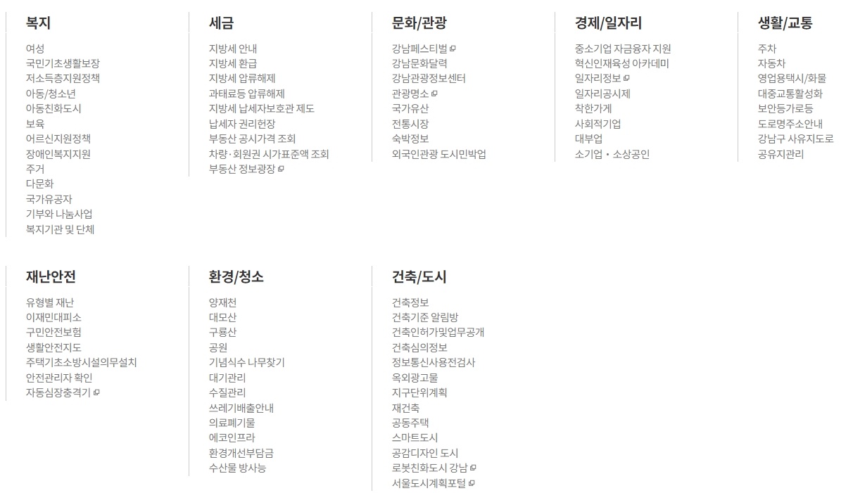 강남구청 홈페이지는 단순히 행정 서비스만 제공하는 공간이 아니라, 주민과의 소통, 생활 정보, 시설 예약까지 아우르는 종합 플랫폼입니다. 전자 민원처리부터 교육 강좌, 복지 정보, 교통 안내 등 일상과 밀접한 다양한 서비스를 한 곳에서 간편하게 확인할 수 있어요.