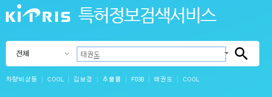 이번에는 다른 예시로 '태권도'를 검색해 볼게요. 검색창에 '태권도'라고 입력하고 검색하면, 상표뿐만 아니라 태권도와 관련된 다른 종류의 지식재산권 정보들도 함께 볼 수 있어서 아주 유용해요.