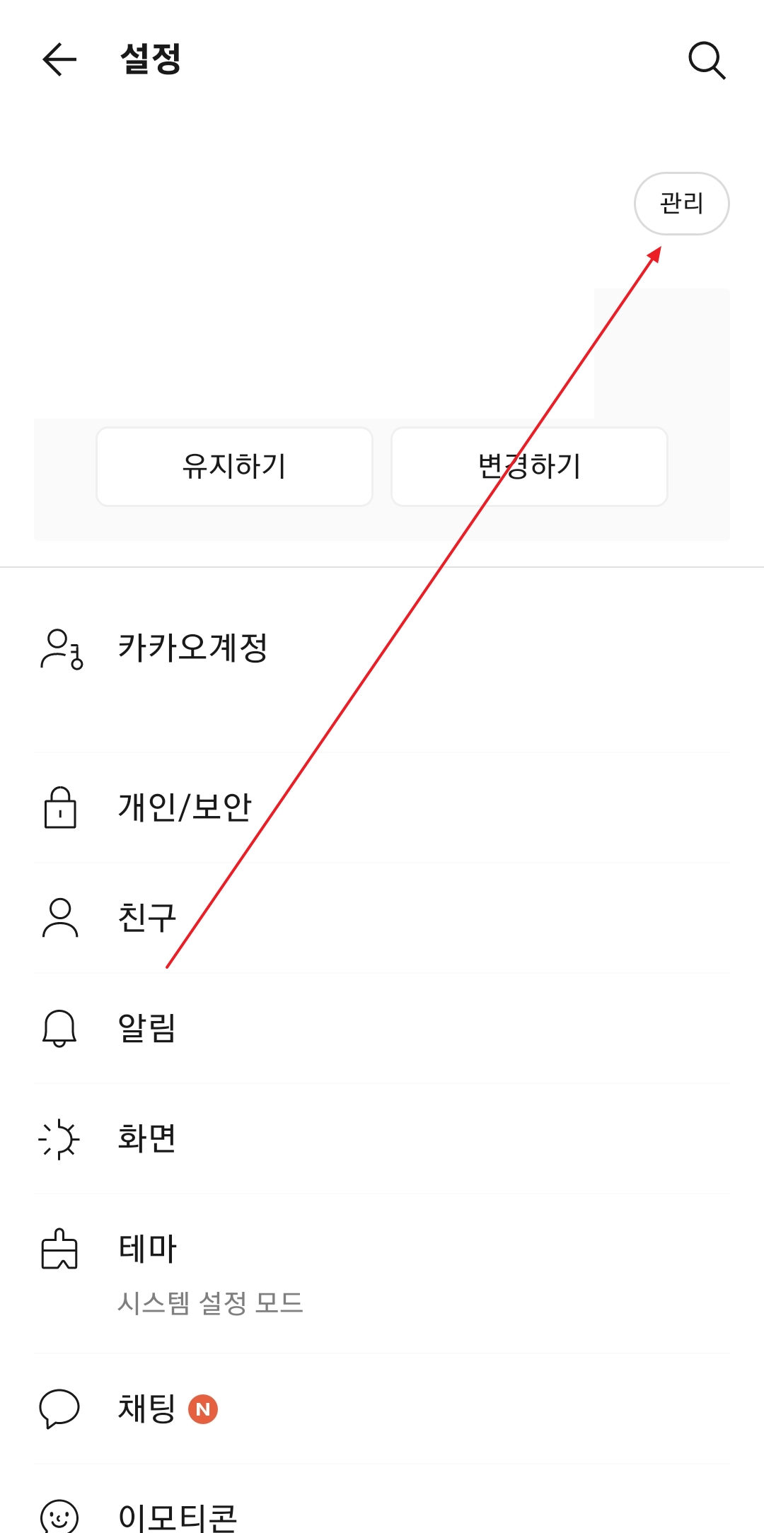 설정 메뉴에 진입하셨다면, 가장 위쪽에 보이는 본인 프로필 영역에서 '프로필 관리'를 선택합니다. 그러면 '내 정보 관리' 화면으로 이동하게 되는데, 이곳에서 '카카오톡 ID' 항목을 쉽게 찾으실 수 있습니다.
