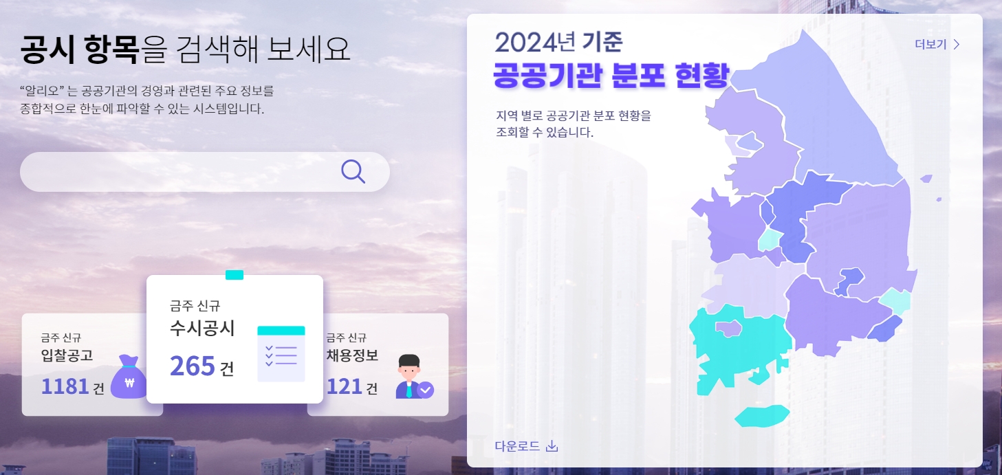 알리오 홈페이지는 세종시 정부세종청사에 있는 기획재정부에서 운영하며, 공공기관의 경영공시 제도, 기관별 정보, 법령, 경영실적 평가 등을 종합적으로 제공합니다. 특히 국민이 신뢰할 수 있는 공공정보 제공이라는 취지에서 만들어졌어요.