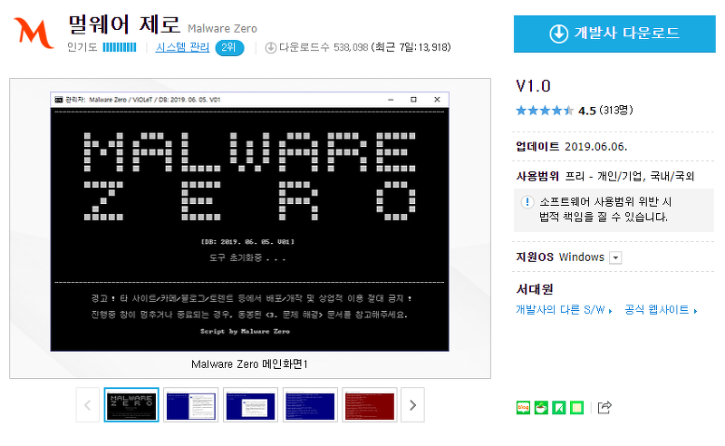 Malware Zero 다운로드 게시물 진입