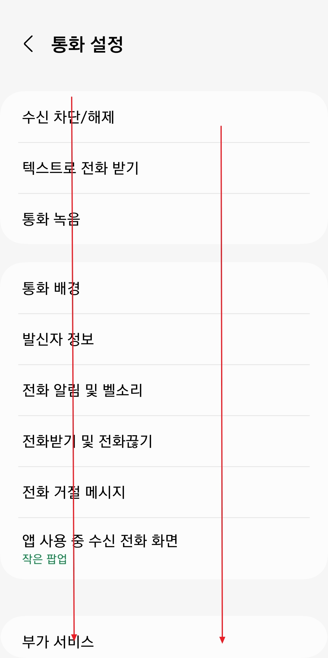설정 화면으로 이동하면 여러 가지 메뉴가 보입니다. 화면을 조금 아래로 내려 '기타 통화 설정'이라는 항목을 찾아 눌러주세요. 일부 기기에서는 '통화 설정' 또는 '부가 기능'과 같은 이름으로 표시될 수도 있으니 참고해 주세요.