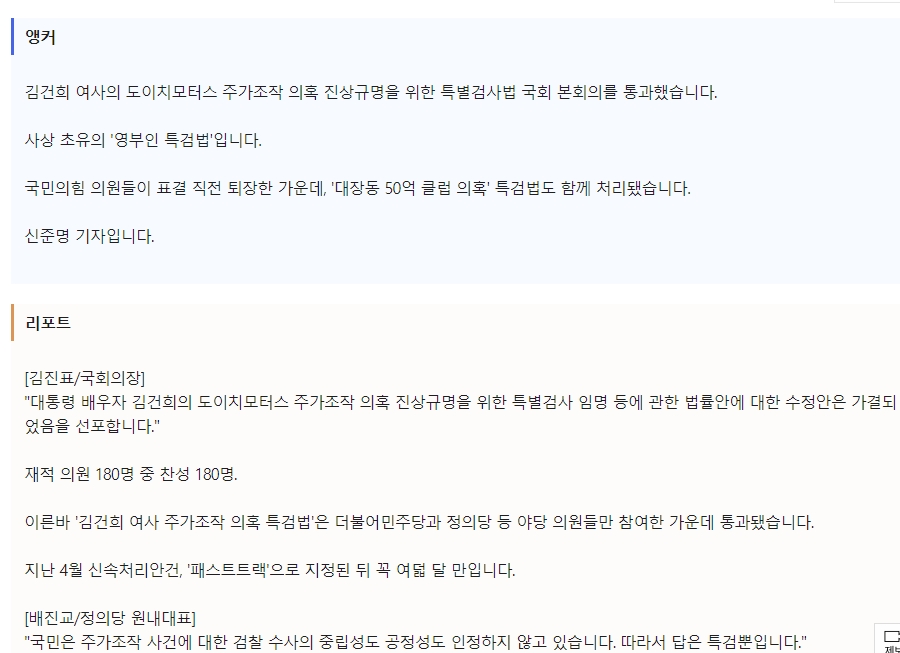 뉴스데스크 영상과 텍스트 스크립트가 함께 제공되는 화면