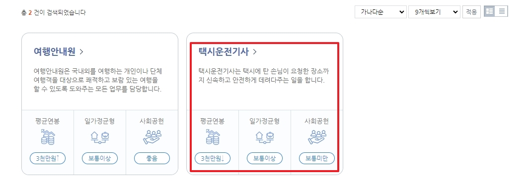 검색 결과에서 '택시운전기사' 항목을 찾아 클릭하면, 해당 직업에 대한 연봉, 하는 일, 필요한 적성 등 종합적인 정보를 한눈에 확인할 수 있는 상세 페이지로 이동하게 됩니다.