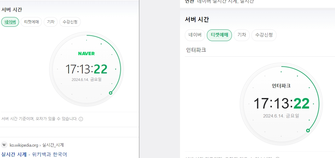 티켓 예매나 대학교 수강신청과 같이 0.1초의 시간 차이가 결과를 좌우하는 상황에서는 일반적인 네이버 시계만으로는 부족할 수 있습니다. 왜냐하면 우리가 보는 시간과 해당 기관의 서버 시간이 미세하게 다를 수 있기 때문입니다.