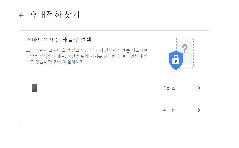 이제 내 구글 계정에 연결된 기기들의 목록이 나타납니다. 스마트폰, 태블릿, 노트북 등 구글 계정으로 로그인한 적이 있는 모든 기기가 표시될 수 있어요. 목록이 길더라도 당황하지 마세요.