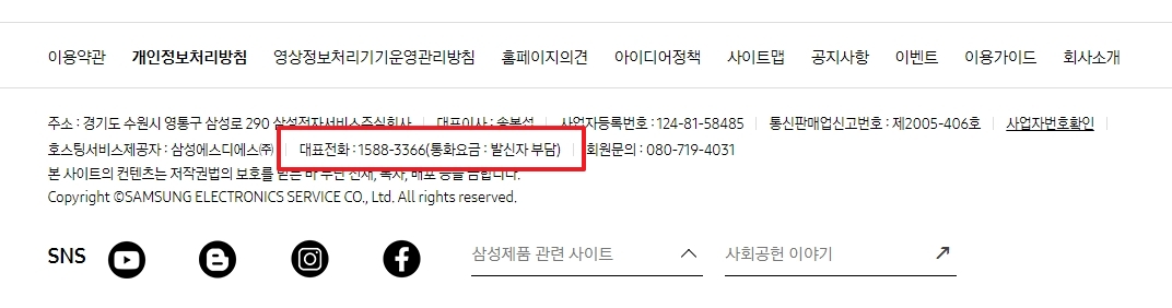 홈페이지 화면을 가장 아래쪽으로 내리면, 대표 전화번호와 함께 챗봇 상담, 출장 서비스 예약 등 다양한 지원 방법을 한눈에 볼 수 있습니다. 전화 연결이 어려운 성수기에는 챗봇 상담을 이용하는 것도 좋은 방법이에요. 24시간 언제든지 궁금한 점을 물어보고 답변을 받을 수 있어 편리합니다.