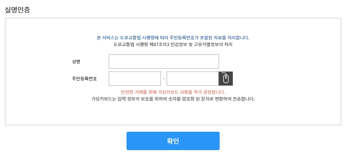 다음은 내 면허 정보를 확인하고, 기존 면허증을 분실했는지 체크하는 단계예요. 이름, 주민등록번호, 면허 번호가 맞는지 꼼꼼하게 확인해 주세요.
