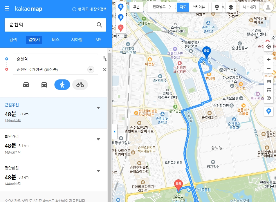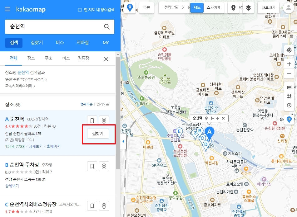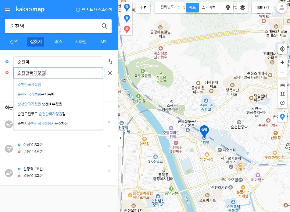 우선 카카오맵 길찾기를 쓰려면 앱을 켜거나 PC에서 접속해야겠죠? 화면을 보면 검색창이 바로 보일 거예요. 여기에 내가 출발할 장소, 예를 들면 '순천역' 같은 식으로 정확한 명칭을 입력하고 검색 버튼을 누르시면 돼요. 이게 길찾기의 가장 기본 첫 단계랍니다.