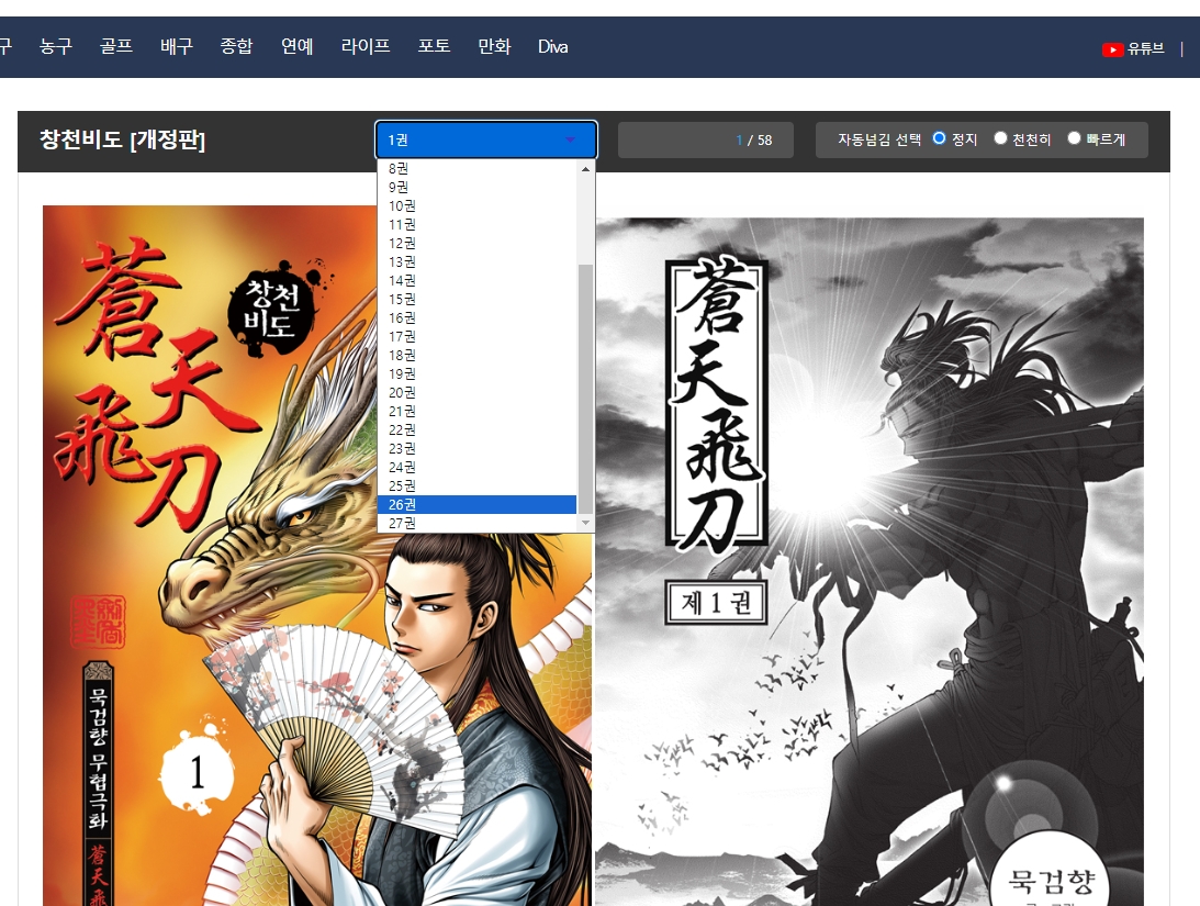 스포츠조선 상단 만화 메뉴