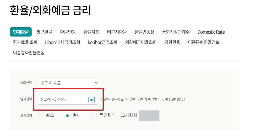 이게 제일 중요한 단계예요. 여기서 날짜를 잘못 고르면 엉뚱한 환율이 나오니까요. 예를 들어 '2024년 2월 5일'처럼 정확한 날짜를 클릭해 주시면 됩니다.
