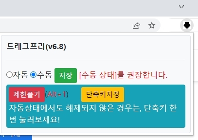 5. 확장 아이콘을 클릭하거나 Alt+1 단축키를 눌러 우클릭 차단 해제 기능을 활성화하세요. 단축키는 설정에서 원하는 방식으로 변경할 수 있으나 다른 확장과 충돌하지 않도록 주의하세요.