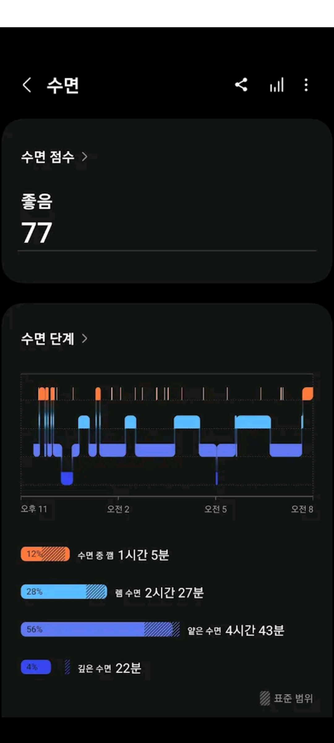 이건 진짜 저만 알고 싶은 꿀기능인데, 바로 수면 분석 기능입니다. 단순히 몇 시간 잤는지 알려주는 걸 넘어서, 자는 동안 코를 얼마나 골았는지 녹음까지 해주거든요. 처음엔 제 코골이 소리 듣고 충격받았지만, 덕분에 수면 습관 고치는 데 큰 도움을 받았습니다.