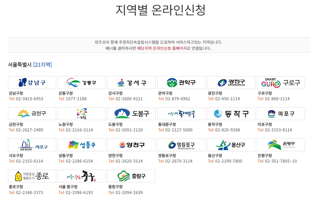 서울이나 경기 지역 사시는 분들은 여기서 조금 번거로움을 느끼실 수 있어요. 서울은 21개, 경기도는 24개 지자체로 나뉘어 있어서 내가 방문하는 구마다 개별적으로 신청해야 하거든요. 강남구에 신청했다고 해서 서초구 단속 알림이 오는 게 아니라는 뜻이죠.
