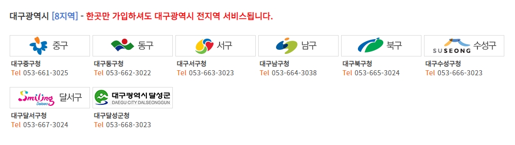 반면에 인천이나 대구에 거주하시는 분들은 정말 복 받으신 거예요. 이 두 지역은 시스템이 통합되어 있어서 한 곳만 가입해도 해당 시 전체 지역에서 서비스를 받을 수 있거든요. 구청마다 일일이 들어갈 필요가 없으니 세상 편하죠.