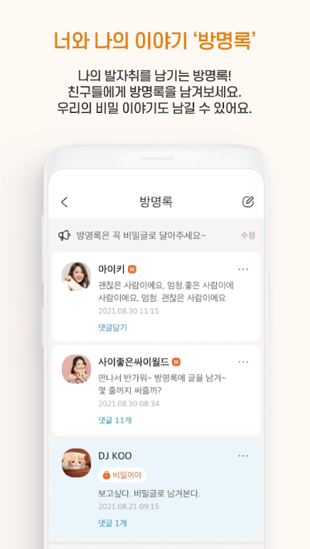 싸이월드 하면 빼놓을 수 없는 게 바로 파도타기 기능이잖아요. 모르는 사람 홈피에 우연히 들어갔다가 밤새 구경하던 그 재미가 쏠쏠했는데, 앱에서도 이 기능이 구현되어 있어요. 랜덤으로 다른 사람의 공간을 방문할 수 있어서 옛날 감성을 느끼기엔 충분합니다.