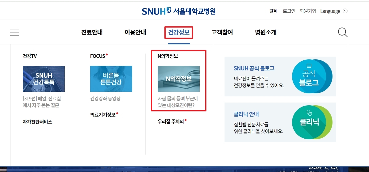 건강 문제로 걱정이 될 때 저는 주로 서울대학교병원 사이트를 방문해서 정보를 찾아보는 편이에요. 인터넷에 떠도는 카더라 통신보다는 전문적인 의료 기관의 정보가 훨씬 신뢰가 가거든요. 사이트에 접속하면 진료 예약부터 다양한 건강 정보를 한눈에 볼 수 있는 메뉴들이 잘 정리되어 있어서 찾기가 쉬웠어요.