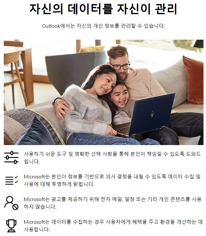 예전 핫메일은 현재 마이크로소프트의 아웃룩으로 재브랜딩되어, 새롭게 제공되는 웹사이트에서 계정 로그인이나 회원가입만으로 간단히 접속할 수 있습니다. 아웃룩에서는 이메일 송수신뿐 아니라 일정 관리와 문서 편집 기능까지 통합하여 제공합니다.