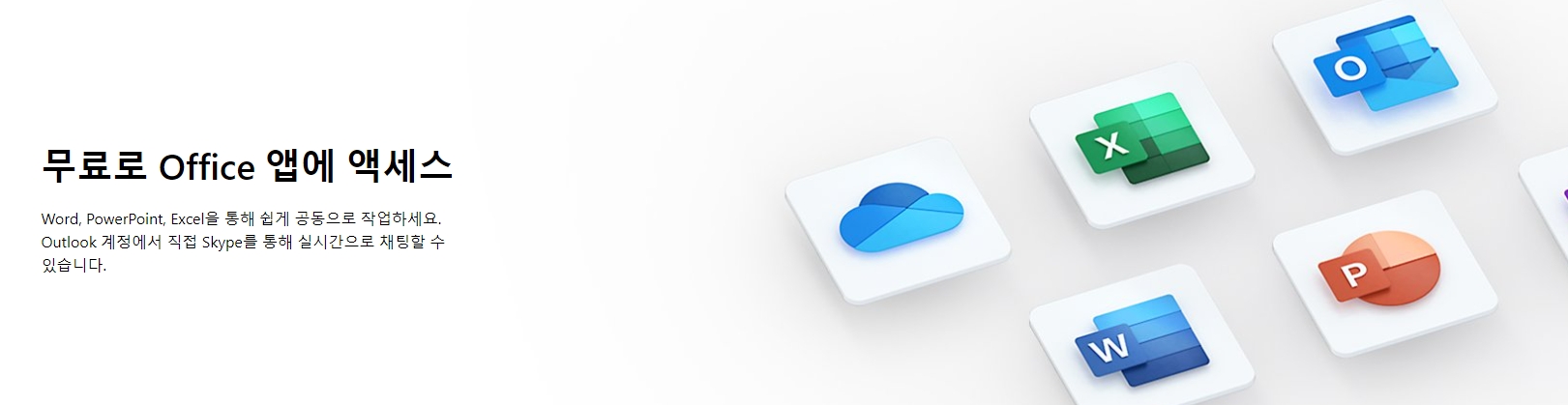 6. 일곱 번째 사진은 무료로 사용할 수 있는 Office 앱 접속 화면으로, Word·PowerPoint·Excel 작업이 가능합니다.