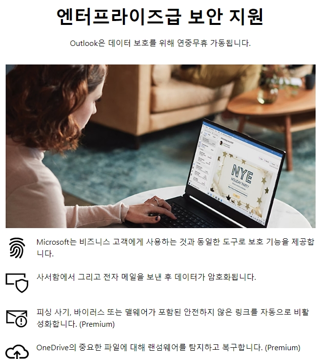 예전 핫메일은 현재 마이크로소프트의 아웃룩으로 재브랜딩되어, 새롭게 제공되는 웹사이트에서 계정 로그인이나 회원가입만으로 간단히 접속할 수 있습니다. 아웃룩에서는 이메일 송수신뿐 아니라 일정 관리와 문서 편집 기능까지 통합하여 제공합니다.