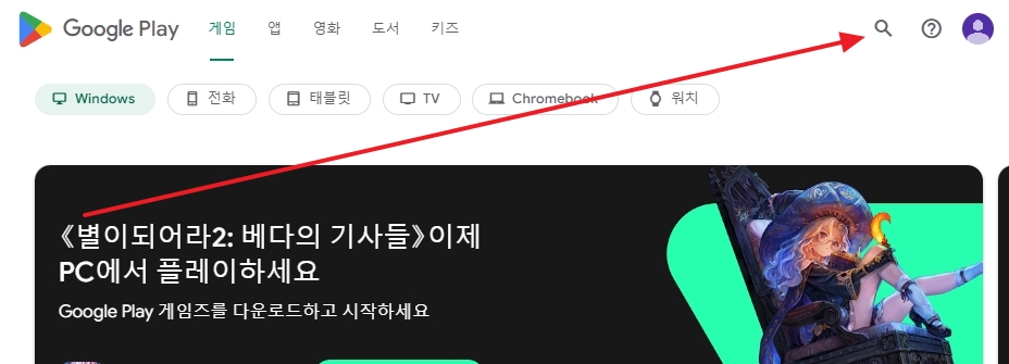 구글 플레이스토어 실행 후 상단 검색창을 확인하는 화면