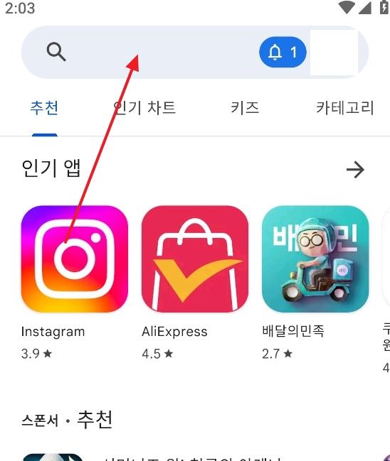 화면 상단을 보시면 돋보기 모양이나 검색창이 보이실 텐데요, 이곳을 터치해서 입력 준비를 해주세요. 카카오 내비 앱 설치하기 다운로드를 위해서는 정확한 검색이 첫걸음이니까요. 간혹 엉뚱한 앱을 받으시는 분들도 계시니 주의하셔야 해요.