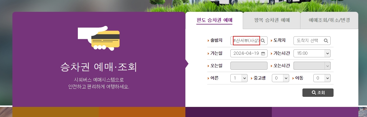 가장 먼저 해야 할 일은 출발지를 설정하는 거예요. 검색창에 '부산'이라고 치면 여러 터미널이 나오는데, 여기서 반드시 '부산서부(사상)'을 정확하게 선택해 주셔야 해요. 부산종합터미널(노포동)과 헷갈리시는 분들이 꽤 많더라고요.