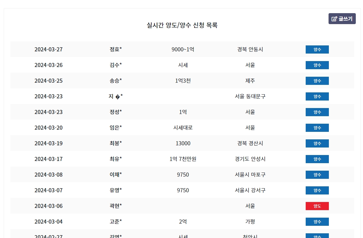 3. 실시간 양도/양수 신청 목록에서 서울 지역 개인택시 면허 시세가 약 9,750만 원에서 1억 원 사이임을 확인할 수 있습니다. 이 정보를 통해 구매를 고려하는 분들은 적정 가격 범위를 가늠할 수 있습니다.