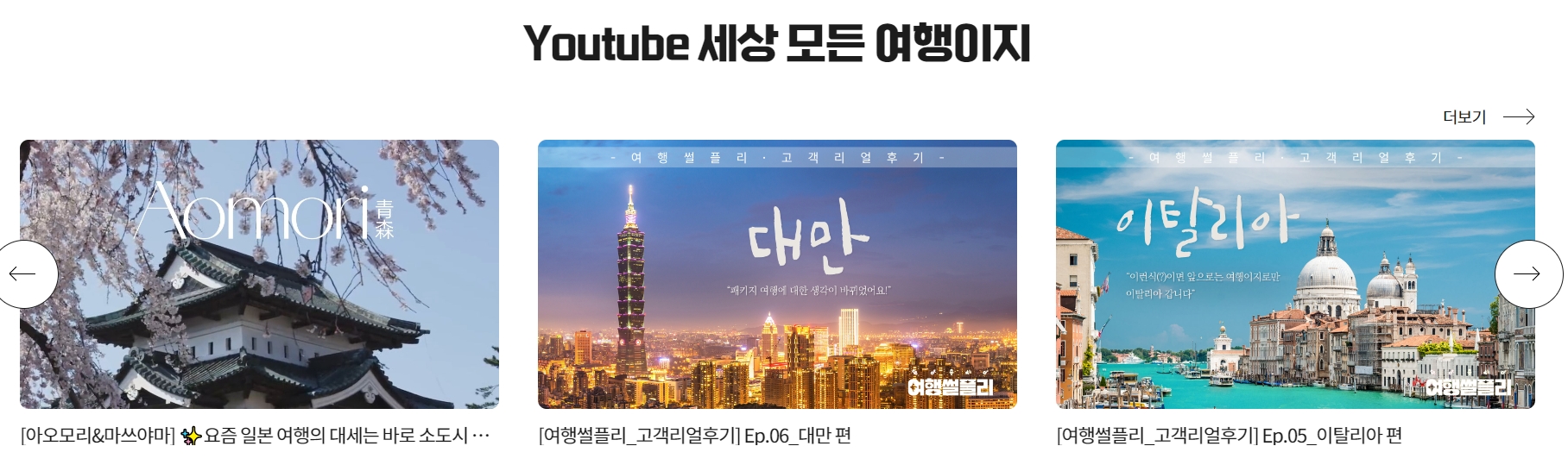 8. YouTube 세상 모든 여행지 코너에서는 고객 리뷰와 여행 관련 영상을 제공하며, 예를 들어 일본의 아오모리, 대만, 이탈리아 여행지 소개 영상이 있어 여행 계획에 유용합니다.