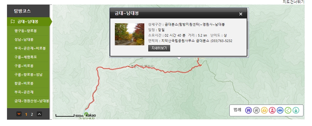이 외에도 구룡사에서 시작하는 코스 등 여러 갈래가 있으니, 지도상의 난이도 색상을 잘 보고 선택하셔야 해요. 검은색으로 표시된 구간은 전문가용이니 초보자분들은 주의하셔야 합니다.