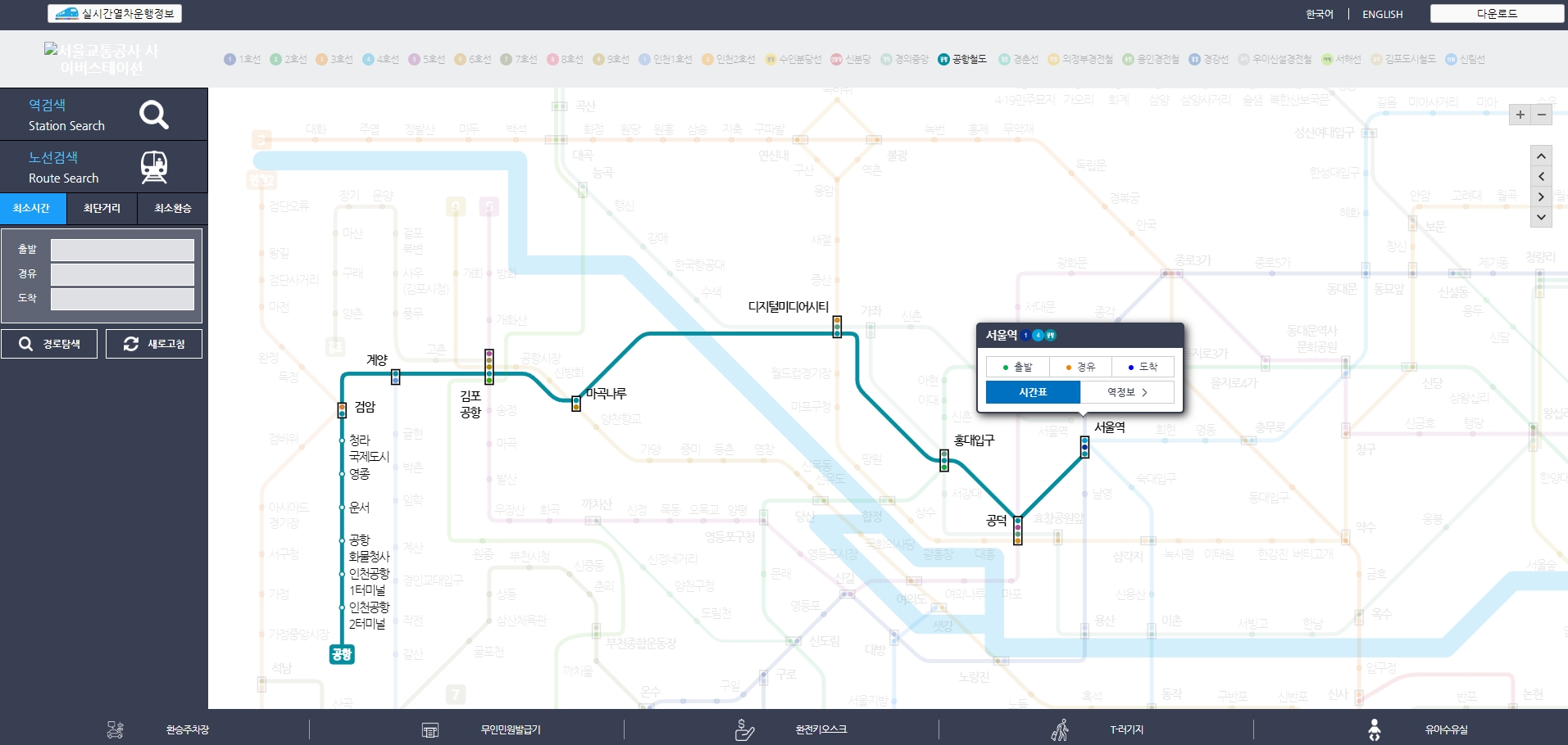 공항철도 노선도 및 시간표 조회 방법