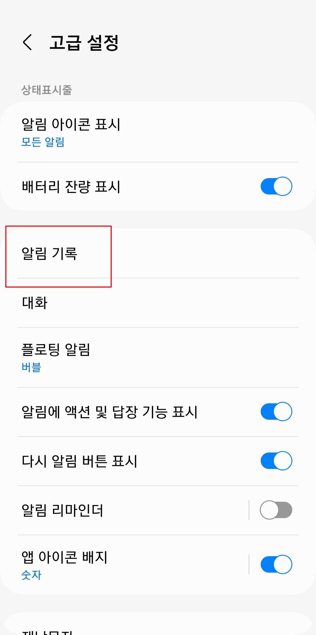 - 설정 > 알림 > 고급 설정 진입