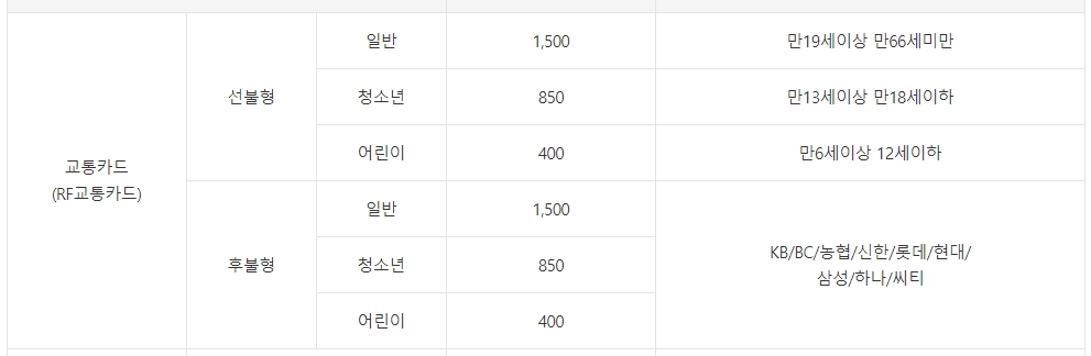 4. 교통카드를 사용하실 경우 일반 요금은 1,500원, 청소년 요금은 850원, 어린이 요금은 400원으로 자동 적용됩니다. 후불형 카드도 동일한 요금 체계가 적용되어 편리합니다.