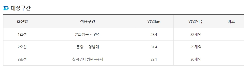 대구 지하철 요금