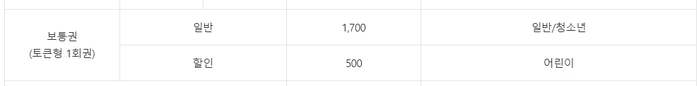 교통카드를 활용하시면 할인된 요금이 적용되며, 1회용 토큰형 승차권은 일반 1,700원, 어린이는 500원이 부과됩니다.