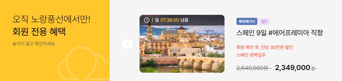 7. 로그인 후에는 맞춤형 상품과 더 많은 추천 혜택을 확인할 수 있어 개인 취향에 최적화된 일정을 제안받을 수 있습니다. 예를 들어 로그인 시 제공되는 스페인 9일 패키지 할인과 포인트 적립 혜택은 여행 비용을 효율적으로 관리할 수 있도록 돕습니다.