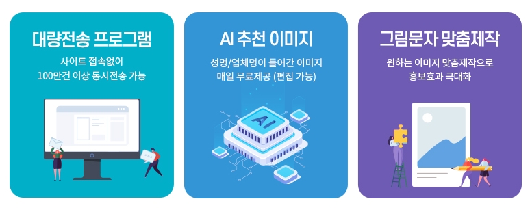 문자나라 바로가기는 다양한 대량문자 발송과 그림문자 전송을 지원하여 홍보와 알림을 효과적으로 관리하도록 도와드립니다. 엑셀 전송 기능과 문서 관리 기능을 통해 업무 효율성을 높이고 시간과 비용을 절감하실 수 있습니다.