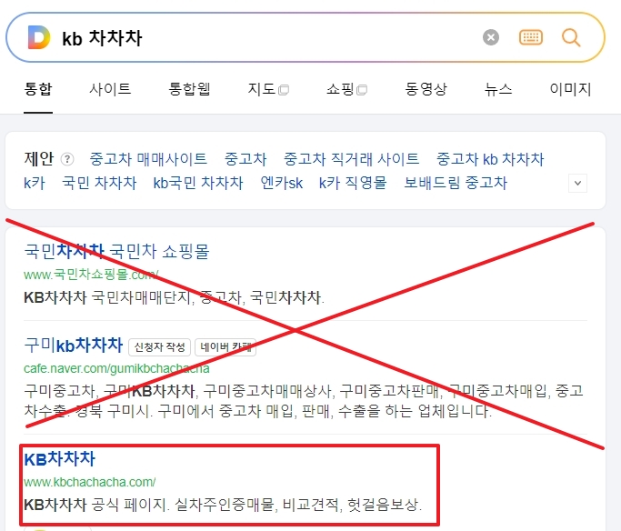 1. 홈페이지 방문 시 검색엔진 결과에서 공신력 있는 공식사이트에 접속하는 것이 중요합니다. 예를 들어 도메인명이 ‘kbchachacha.co.kr’로 시작하는 주소인지 확인하면 보다 정확한 정보를 얻을 수 있습니다. 다만 모바일 환경에서는 자동 리다이렉트로 인해 URL이 변경될 수 있으니 최상위 도메인 확인을 권장합니다.