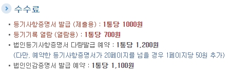 등기부등본을 인터넷으로 발급받을 때는 열람용, 제출용, 법인용 등 목적에 따라 수수료가 조금씩 다르게 책정되어 있습니다. 필요한 용도에 맞춰 선택하셔야 합니다.