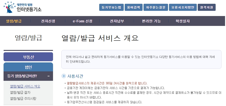 부동산 등기부등본 인터넷 발급 및 열람